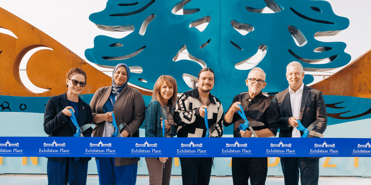 In early October, the official unveiling of Mino Bimaadiziwin, Good Life, 2024–an Indigenous-designed public art installation spanning 50m x 7m–took place at a public ceremony hosted by Exhibition Place in Toronto, ON. A drumming and smudging ceremony led by members of the Mississaugas of the Credit First Nation (MCFN) kicked off the event, followed by several speeches from the artists, father and son duo August and Luke Swinson; Chief Claire Sault, Mississaugas of the Credit First Nation; Ausma Malik, Deputy Mayor and City Councillor, City of Toronto; and Don Boyle, Exhibition Place CEO.